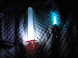 上の写真で左は発泡樹脂の中に細いケミカルライトが三本入っている奴。太くてぼんやり光るのが売りらしい。他の二つは通常型のケミカルライト。